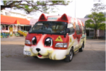 中型の三毛猫バス