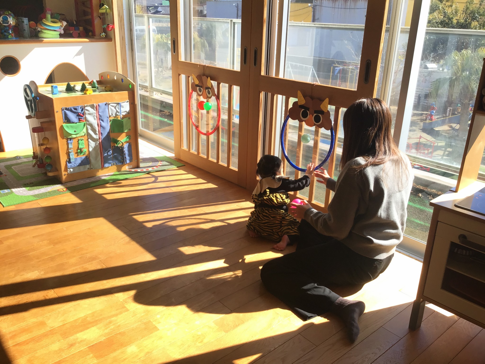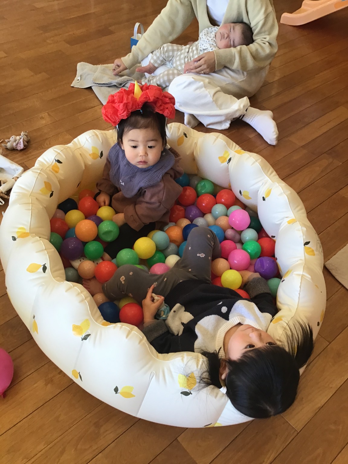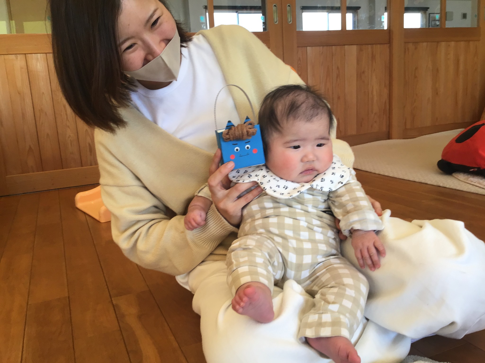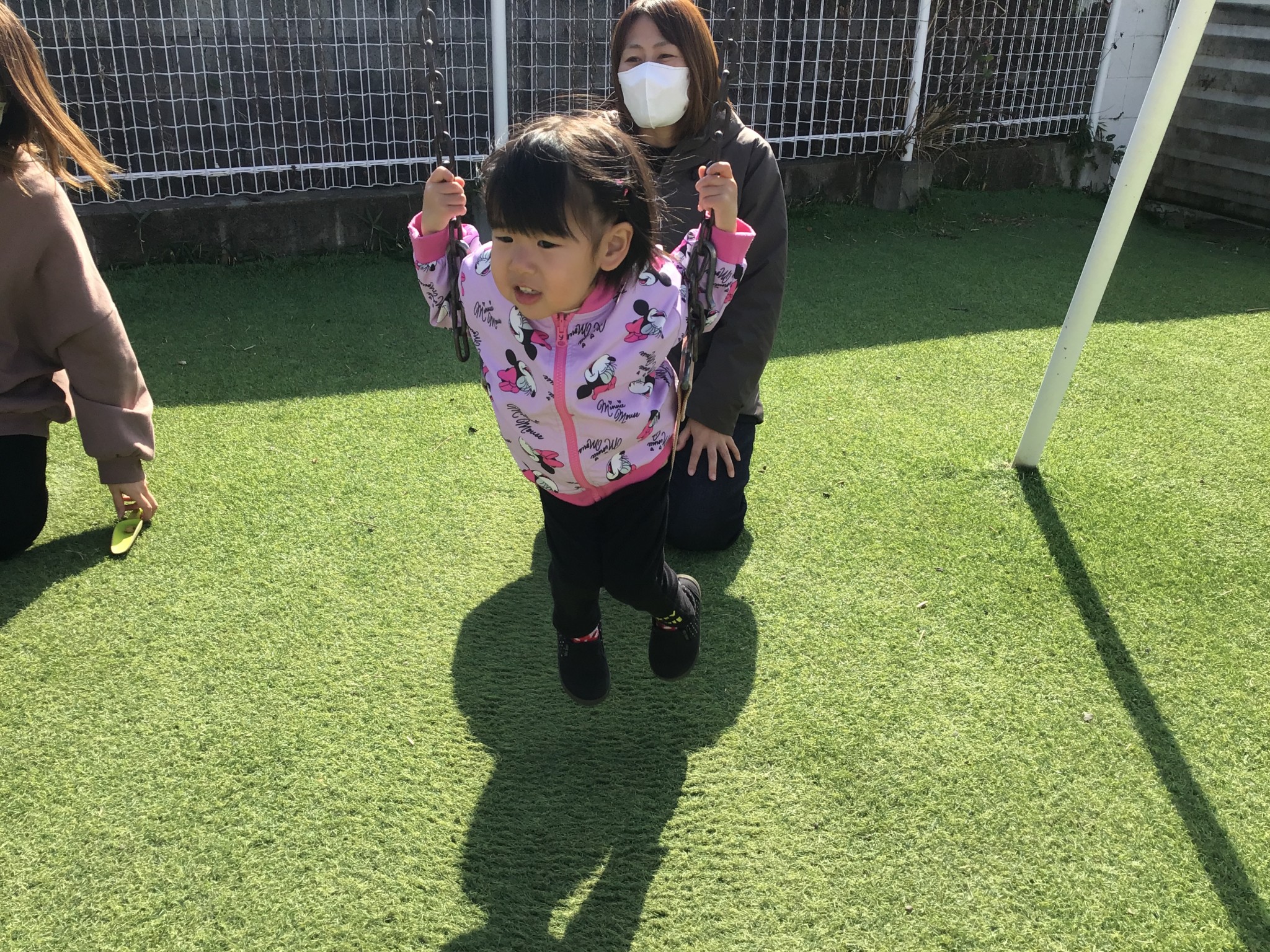 2/2 お外で遊ぼう 2026年2月3日 風が吹くと少し肩をすくませるような日和でしたが, お友達は元気に砂場へ駆け出して行きました♪ 幼稚園のお友達が作っていた美味しそうなケーキや ドーナツなどがあると,食べる真似をしたり 豆をトッピングしたり夢中で遊んでくれました☺️