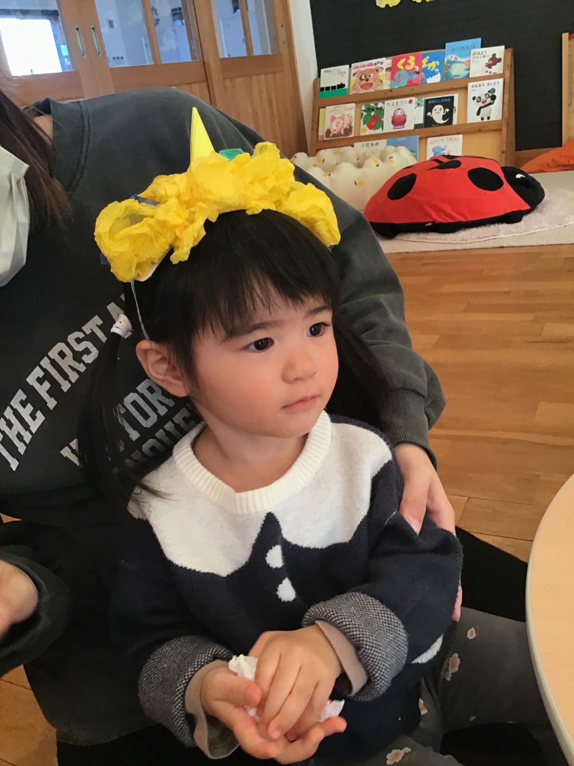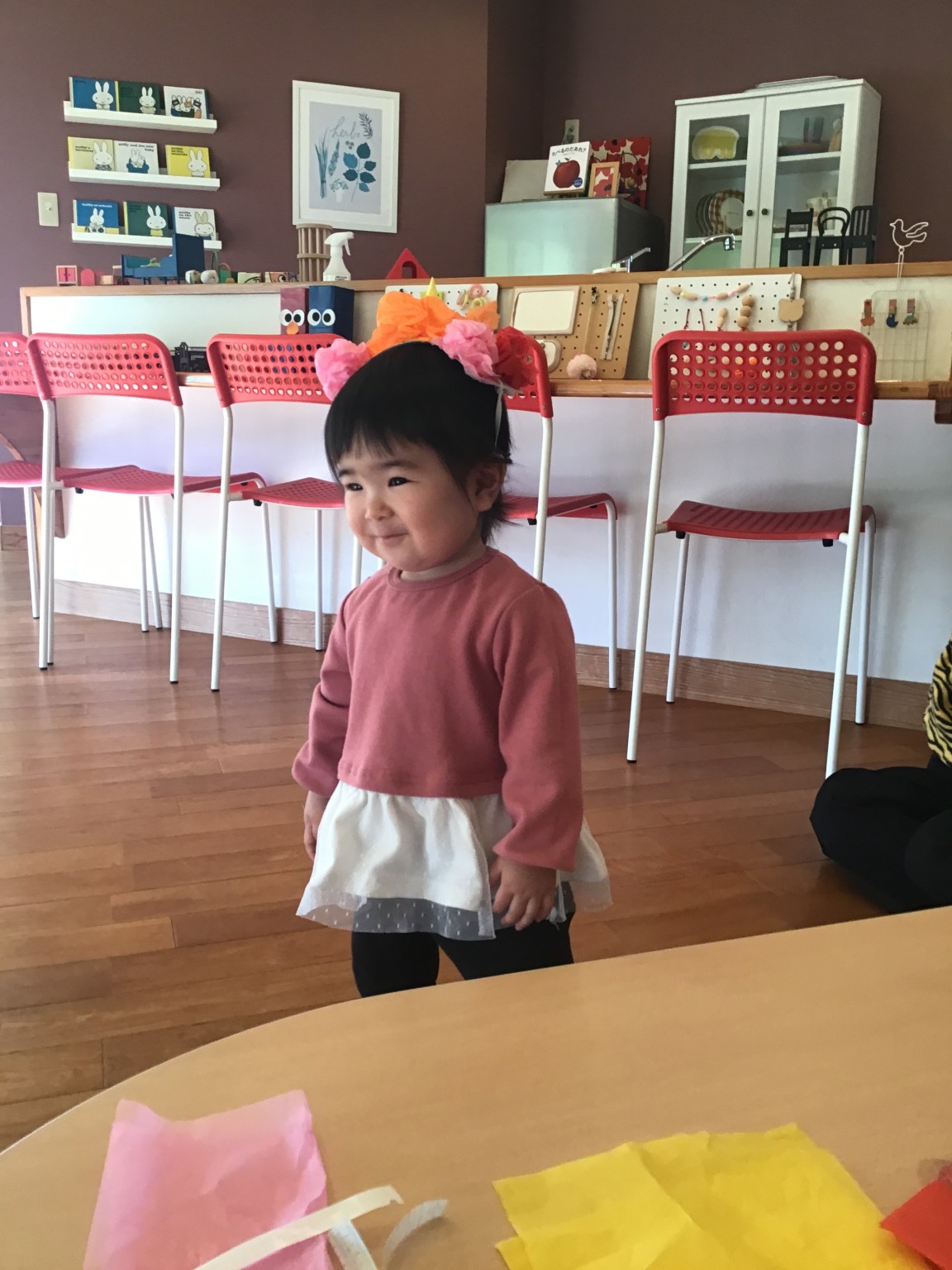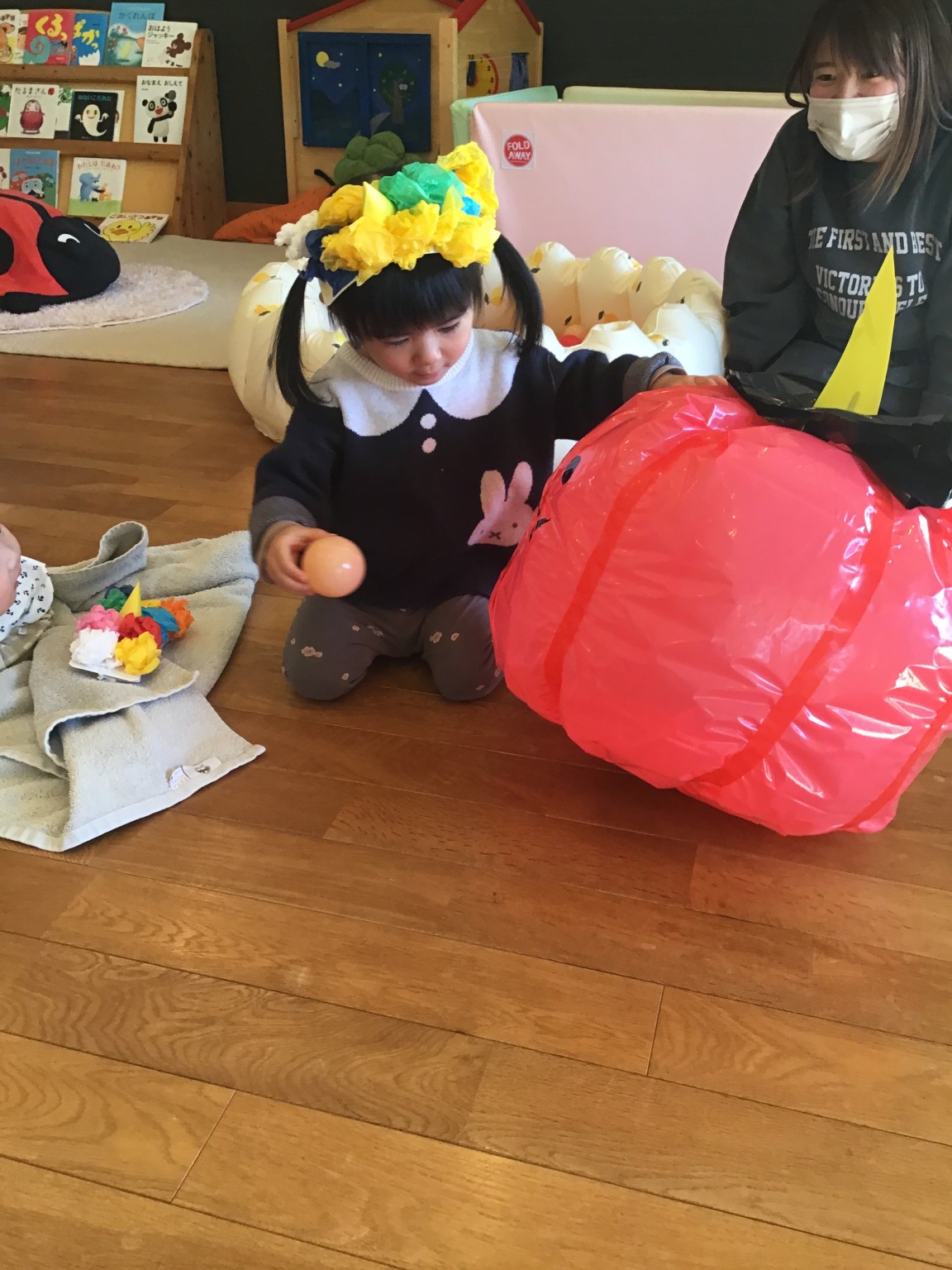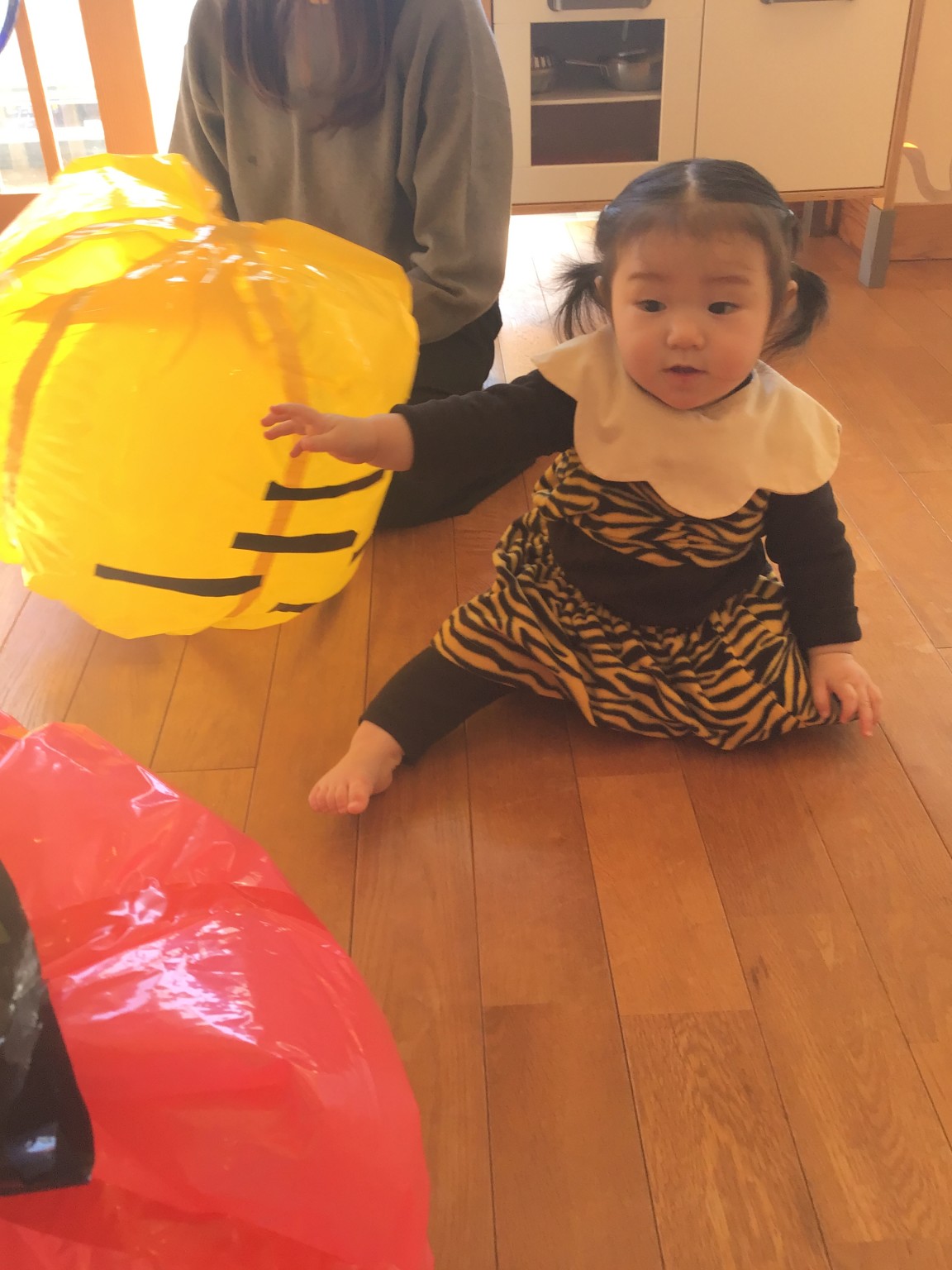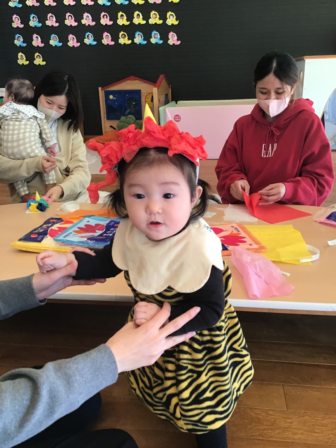 鬼のお面作り 2026年2月3日 今日は節分👹 鬼のお面作りをしました♪ お花紙を丸めてペタペタ付けると かわいい飾りが出来上がり! 鬼の飾りを頭に付けて鬼の飾りにボールを投げてくれました。 鬼の飾りを見て少し怖いーと顔をひきつらせていましたが 一生懸命ボールを投げてくれました。