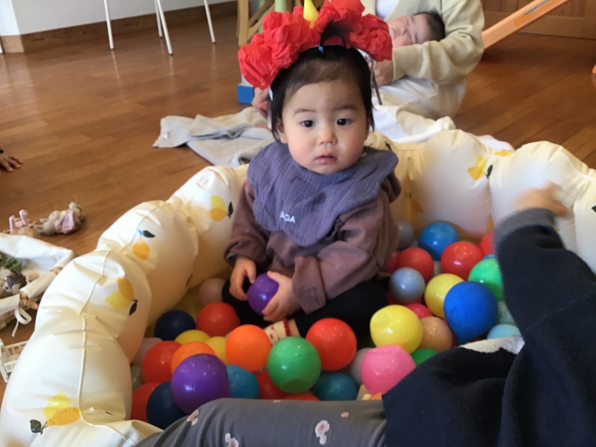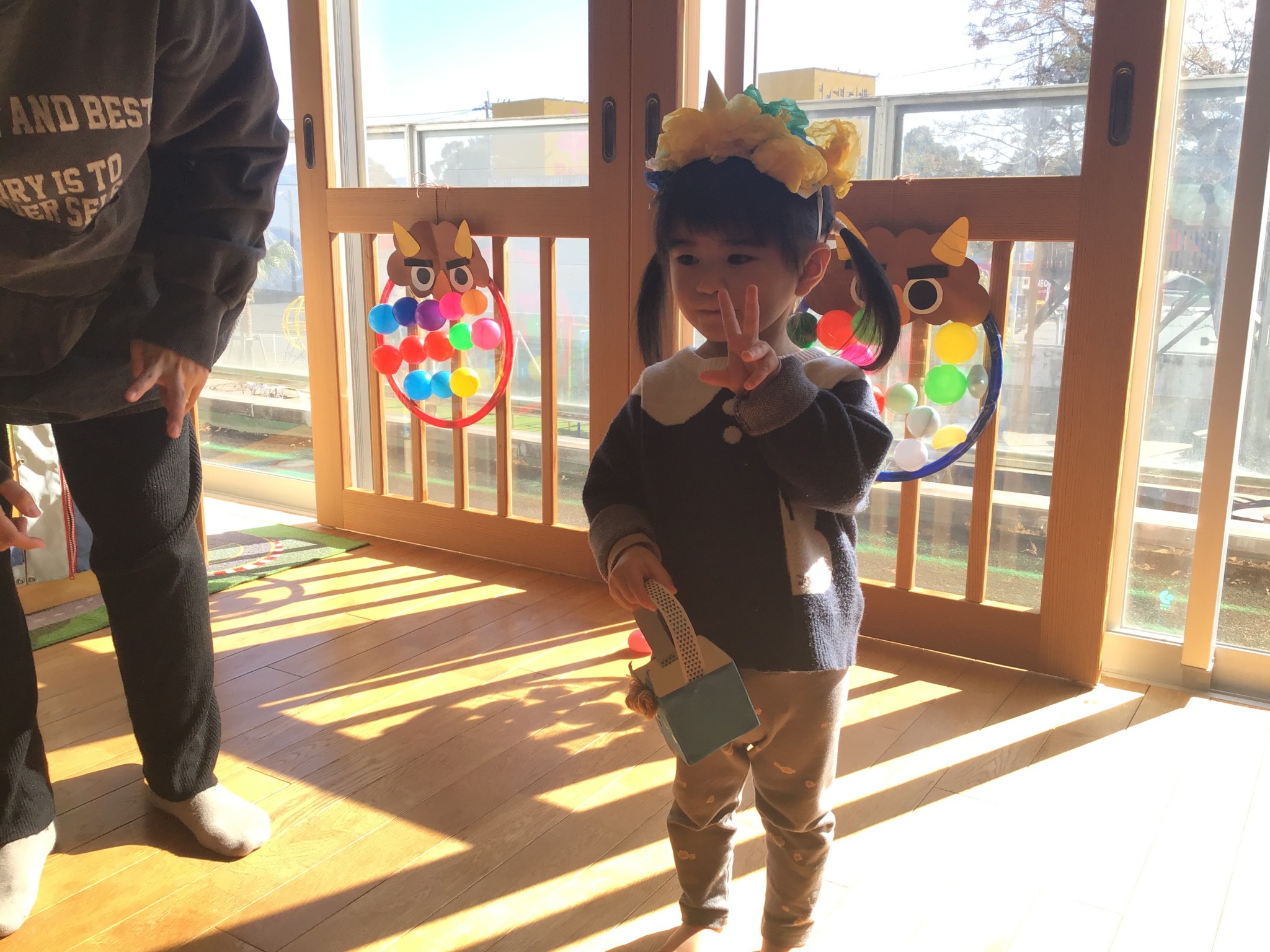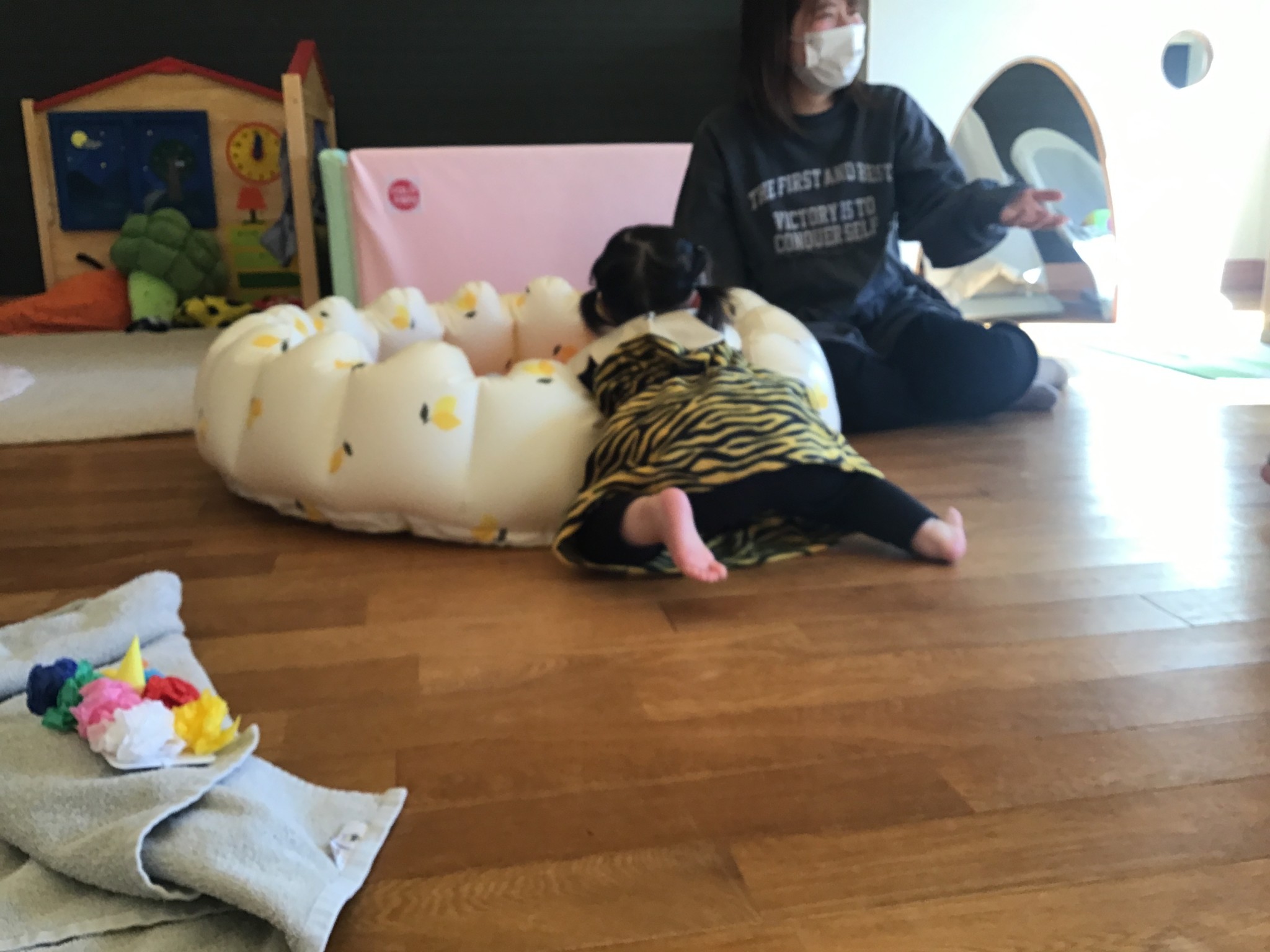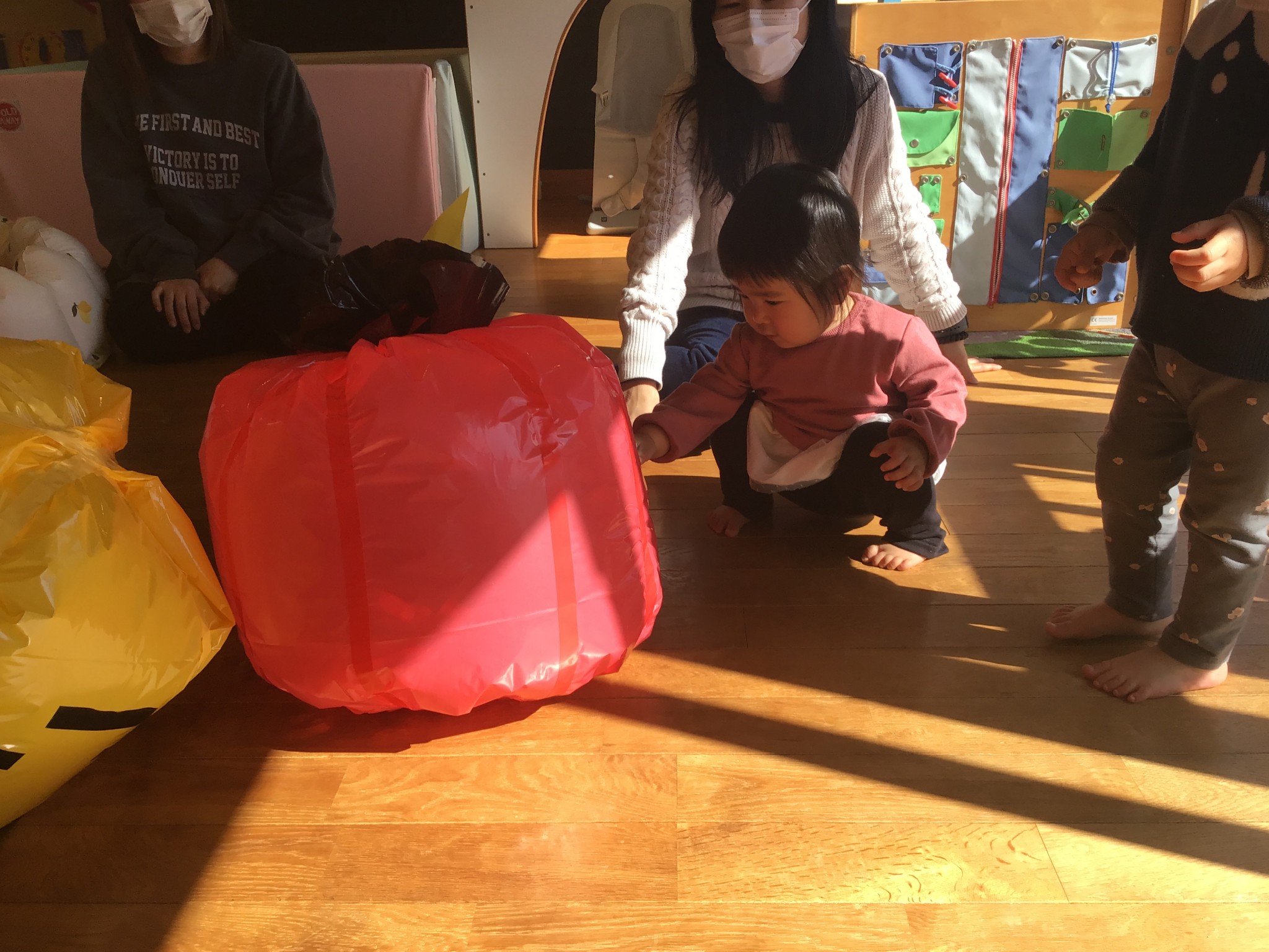 鬼のお面作り 2026年2月3日 今日は節分👹 鬼のお面作りをしました♪ お花紙を丸めてペタペタ付けると かわいい飾りが出来上がり! 鬼の飾りを頭に付けて鬼の飾りにボールを投げてくれました。 鬼の飾りを見て少し怖いーと顔をひきつらせていましたが 一生懸命ボールを投げてくれました。