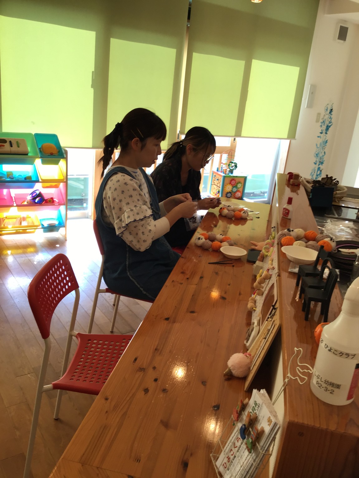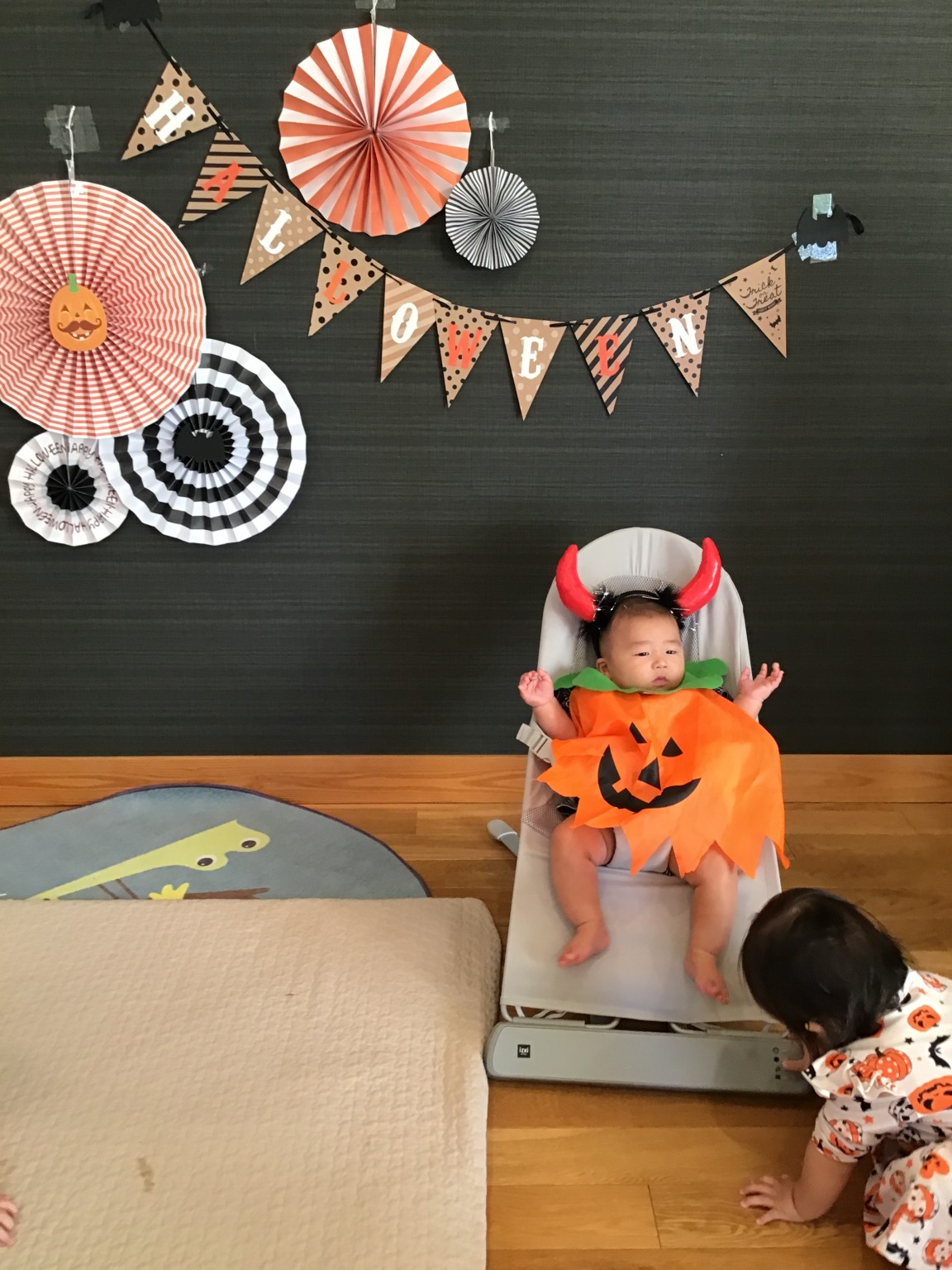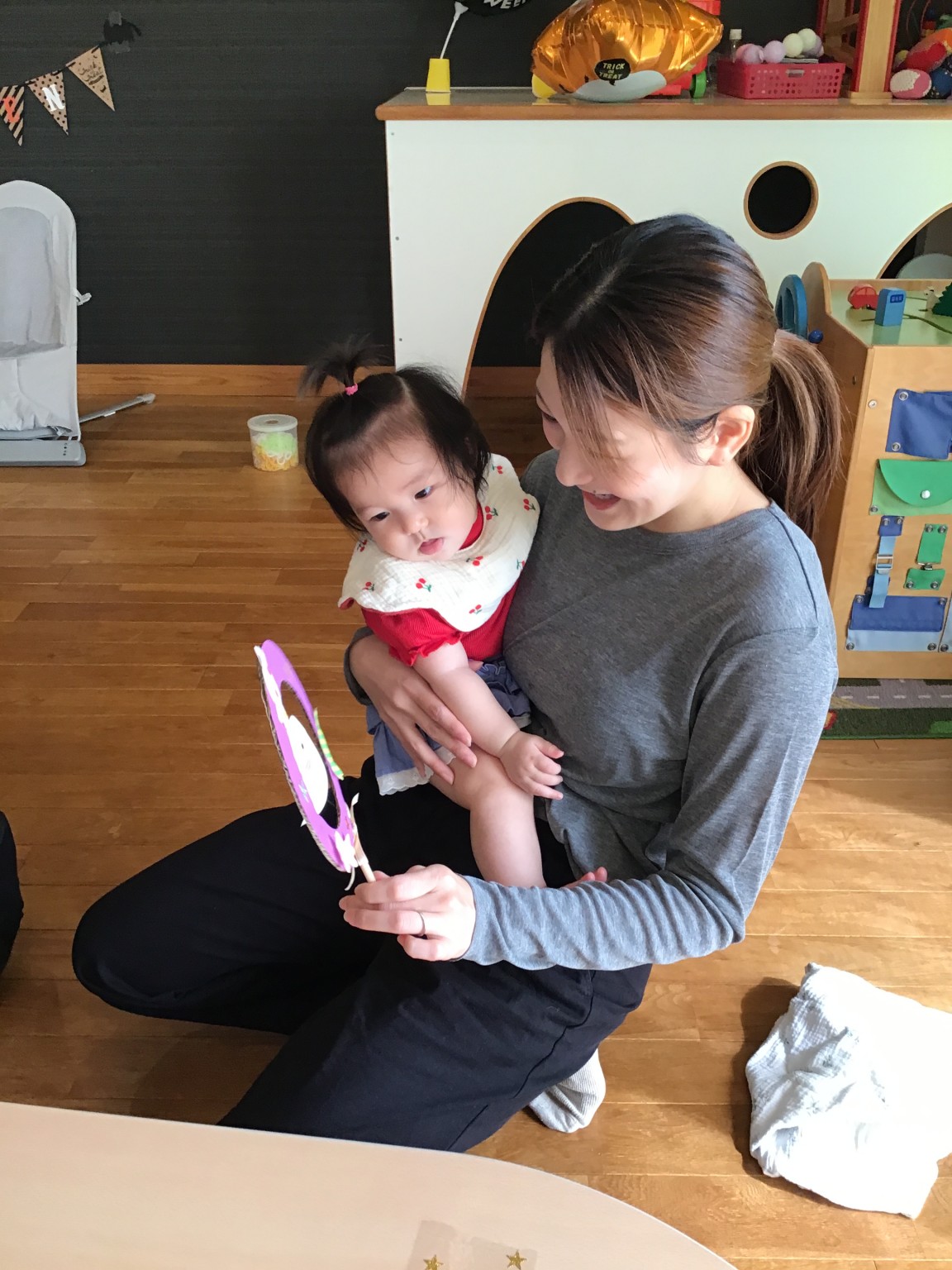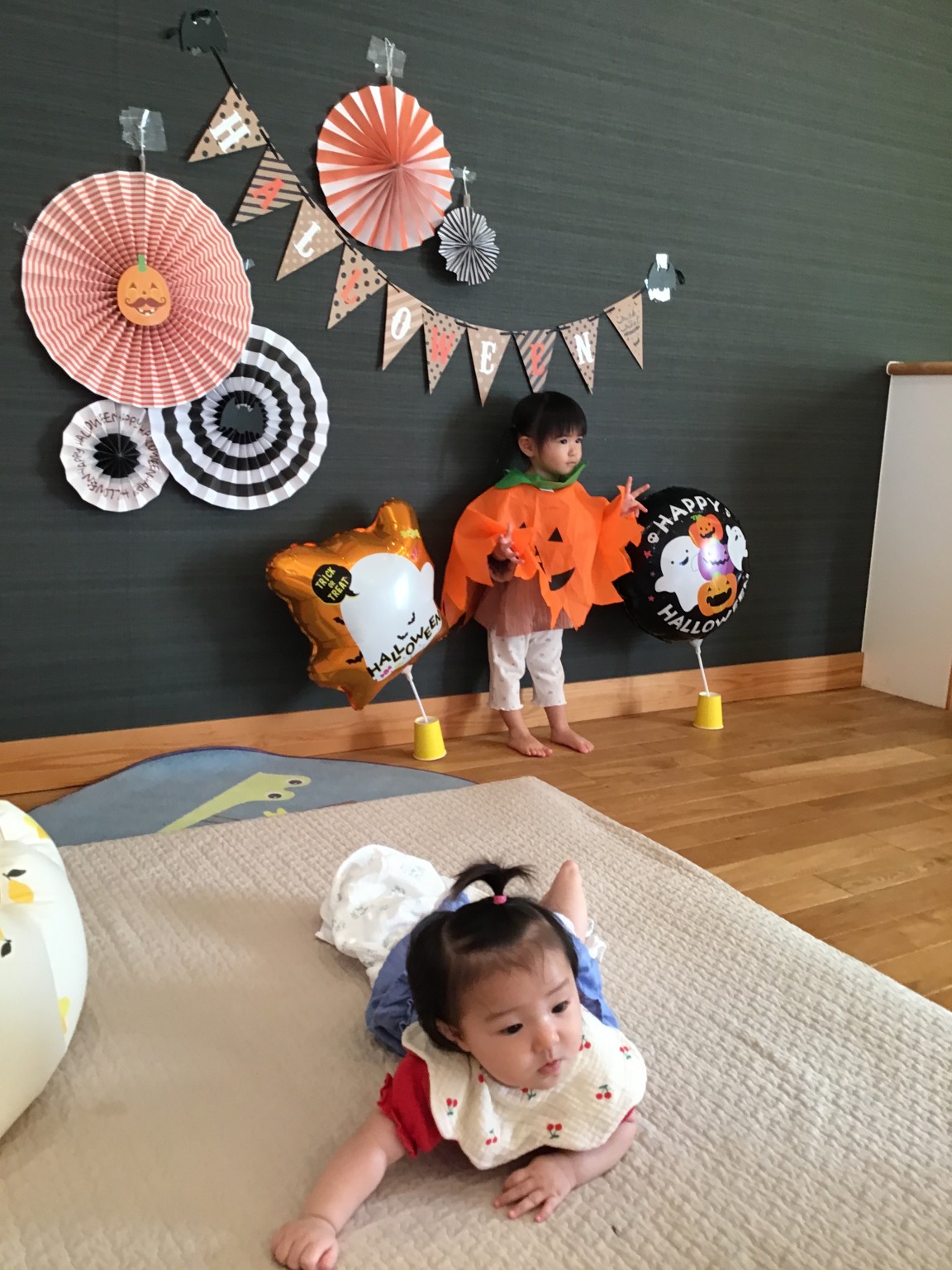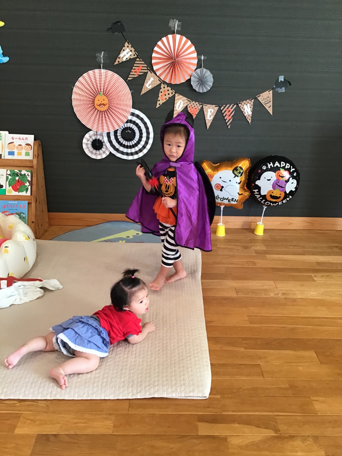 ハロウィン飾りを作ろう🎃 2025年10月27日 今日はハロウィンの日に飾れる飾り作りをしました🎃 お母さん方にジャックオーランタンの顔を 付けてもらいかわいいリースが完成しました♪ そのあとはお友達が手に持って遊べる おもちゃに飾り付けしました。 星のシールを嬉しそうに貼っていたお友達! 息を吹きかけるとくるくるお化けが回るよ👻 と伝えると一生懸命息をふーっと吹きかけてくれて とっても可愛かったです♡ 仮装もして写真撮影会もでき 楽しく過ごしました♪
