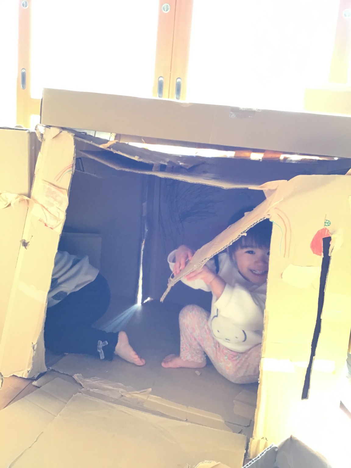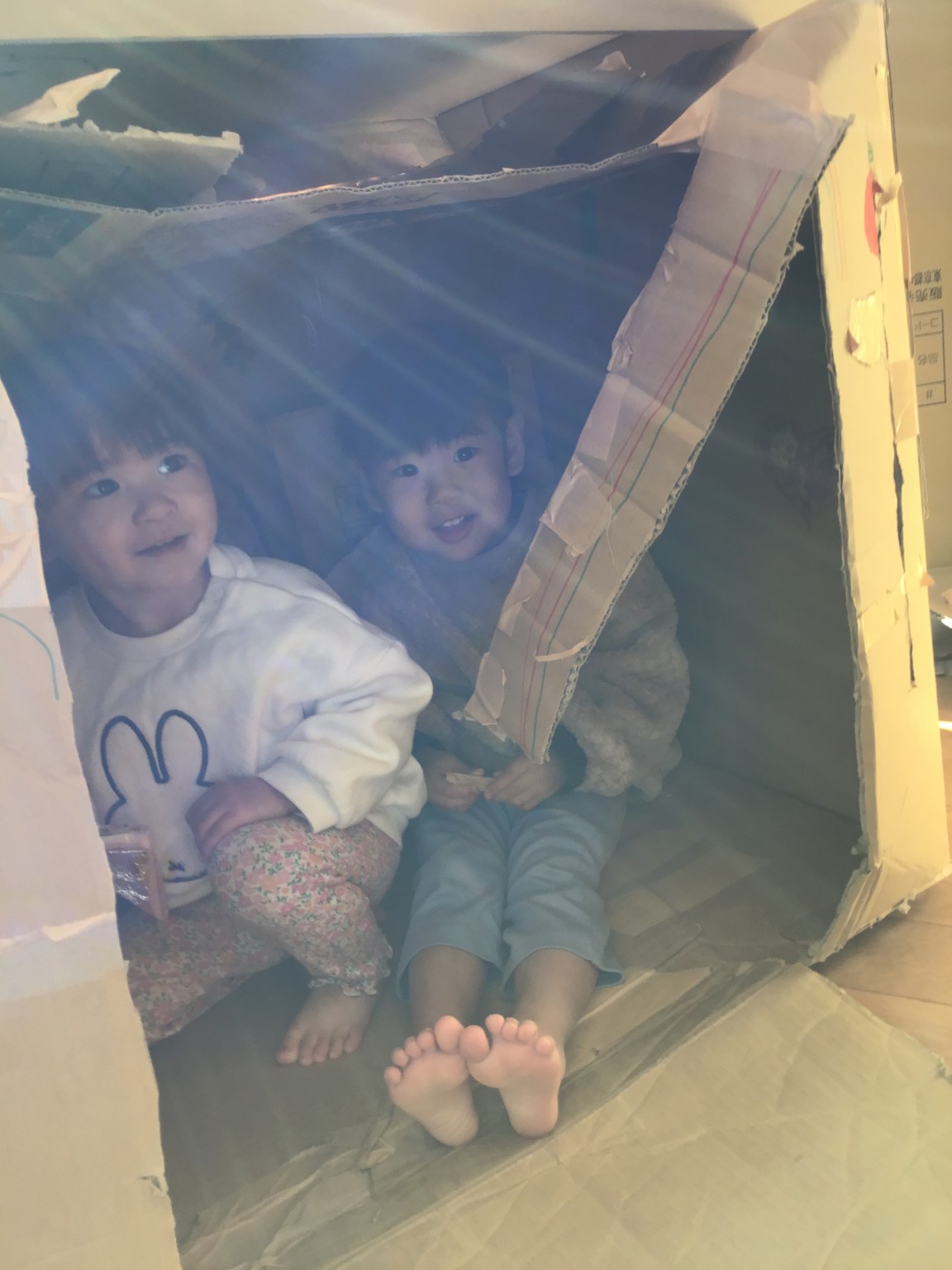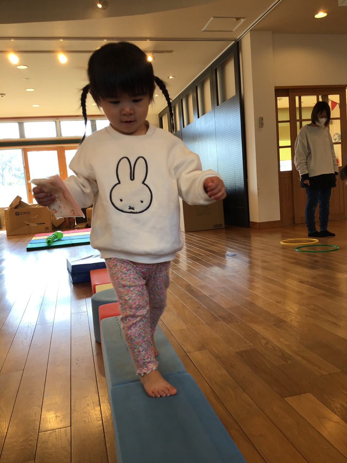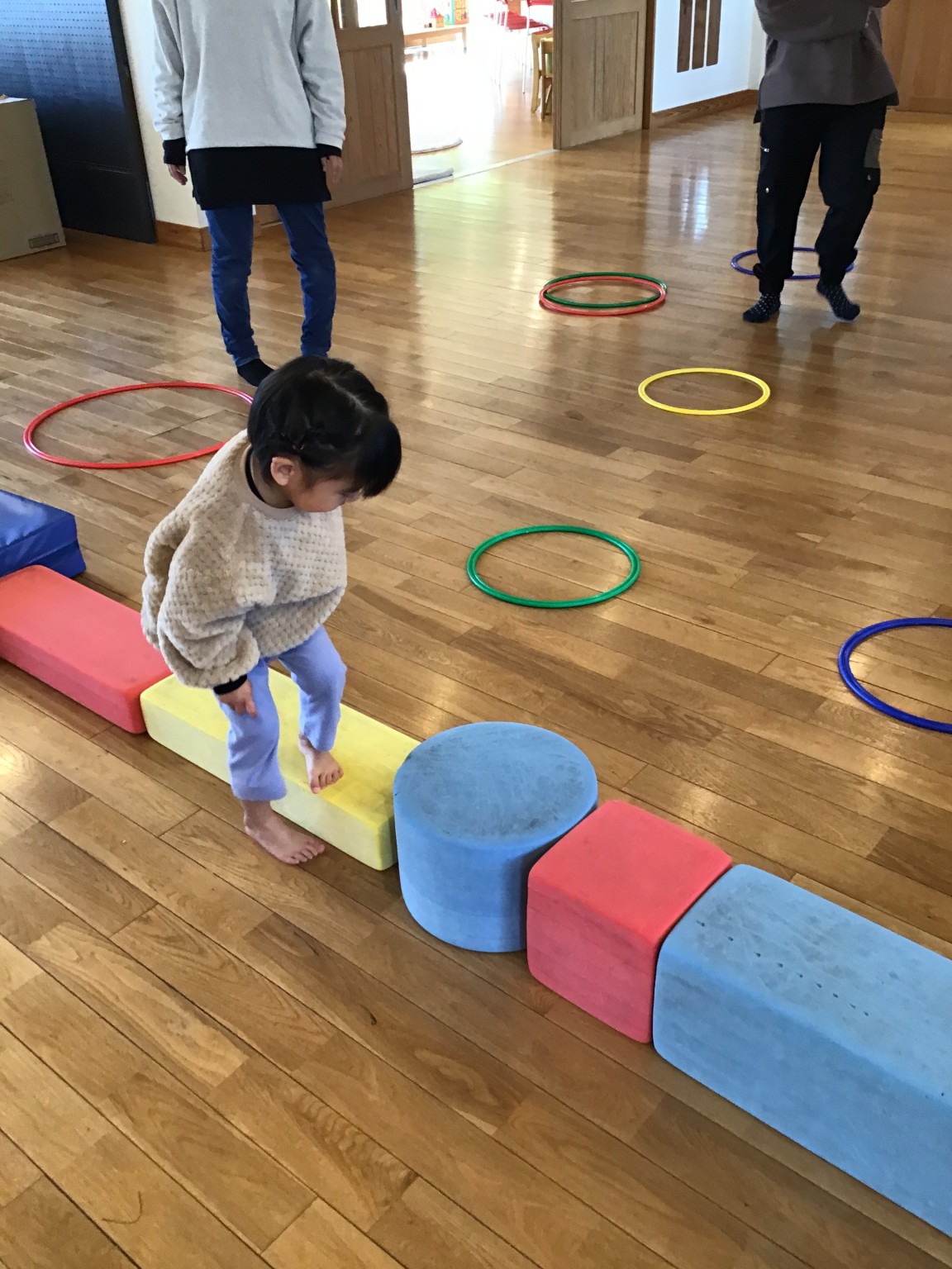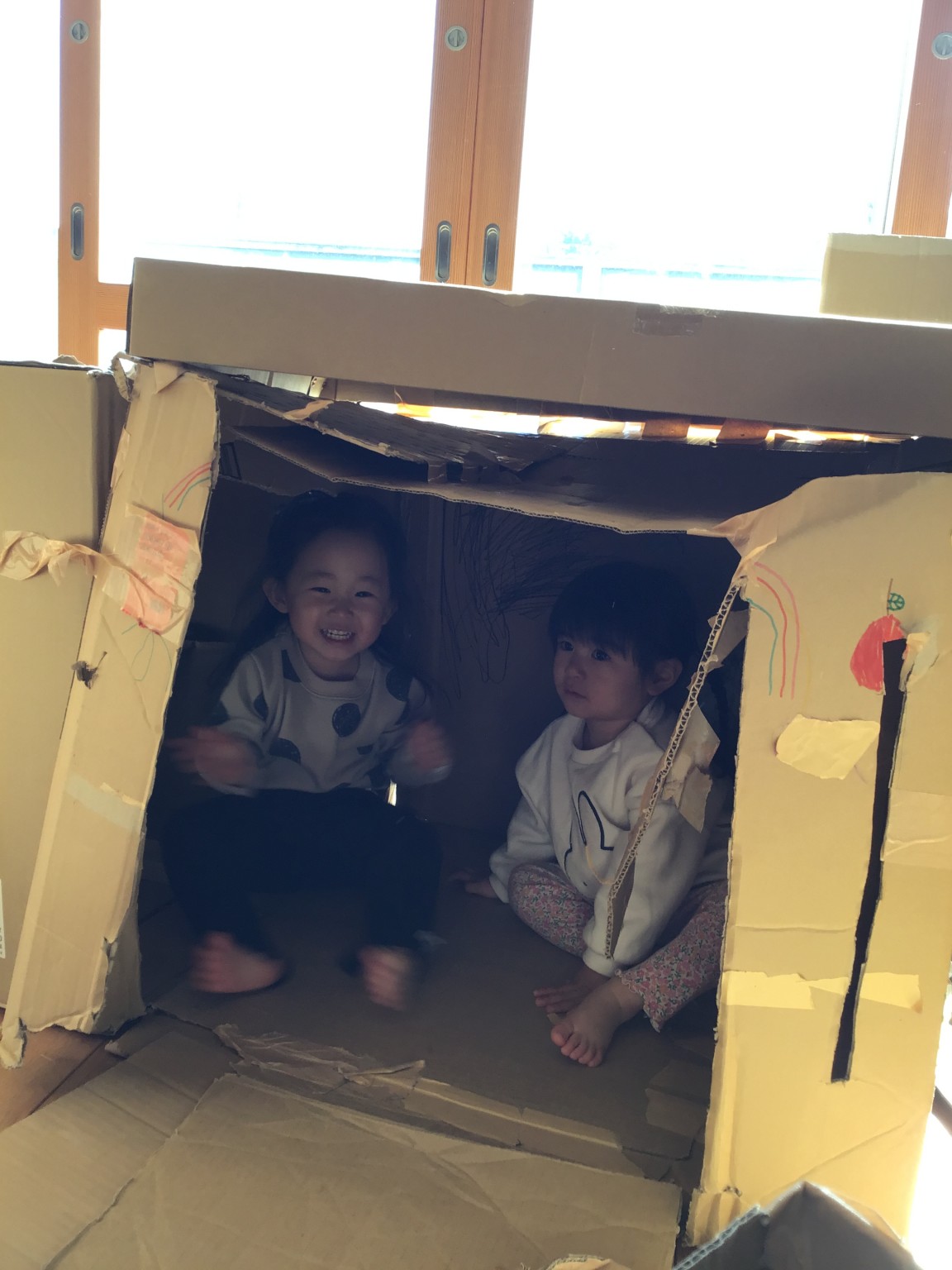 ホールで遊ぼう🎵 2026年1月15日 今日は広ーいホールで遊びました♪ 幼稚園の年長組さんが作ったダンボールのお家で 遊んだり,大型積み木の上を渡ったり トンネルくぐりをしたり楽しい時間でした♪ お友達も走り回って体いっぱい動かして 笑顔が沢山見れました😄