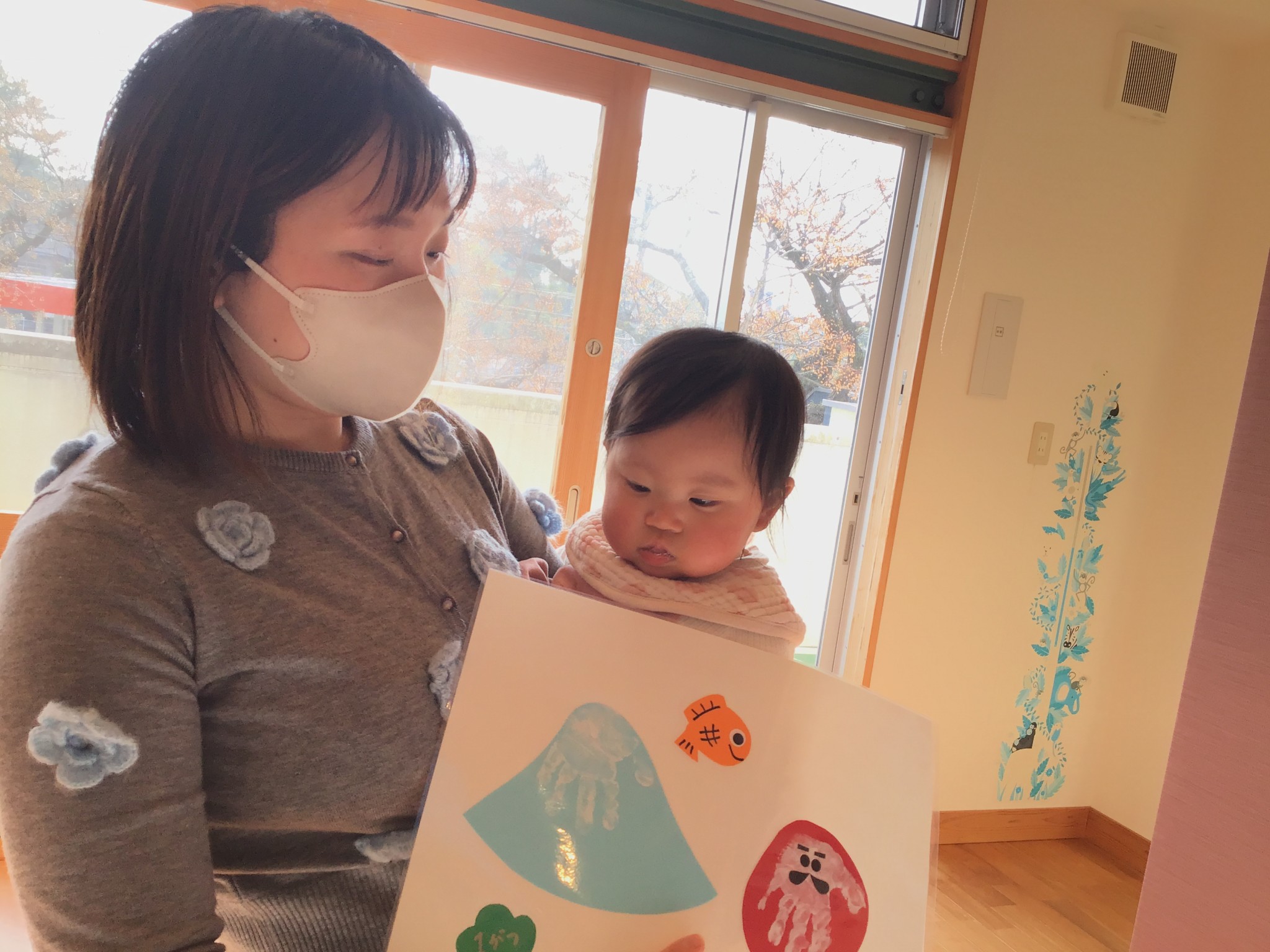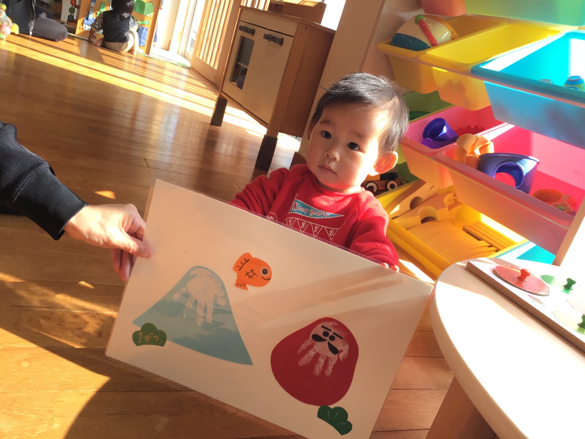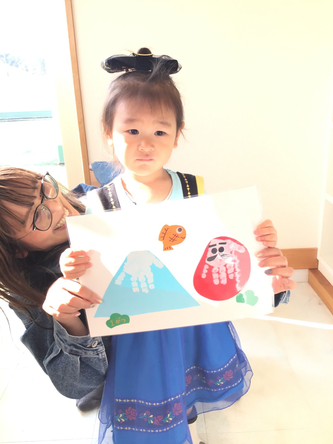1月の手型はだるまさんと富士山を作りました♪
