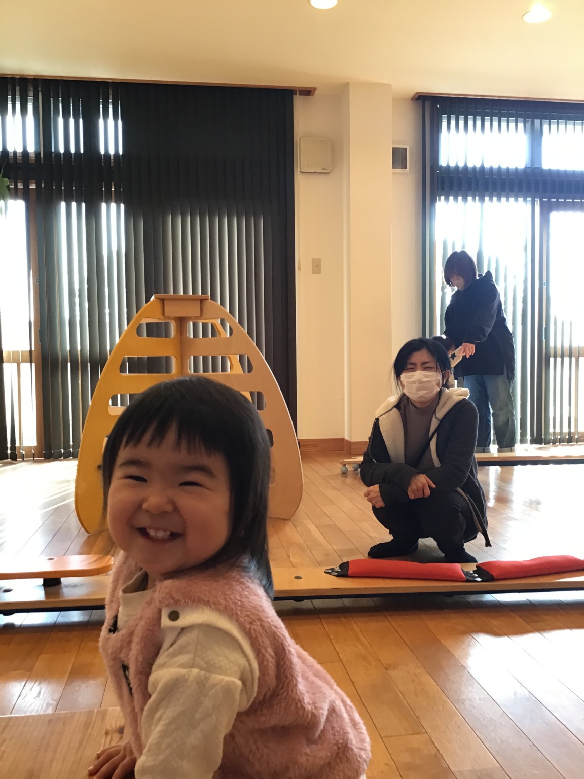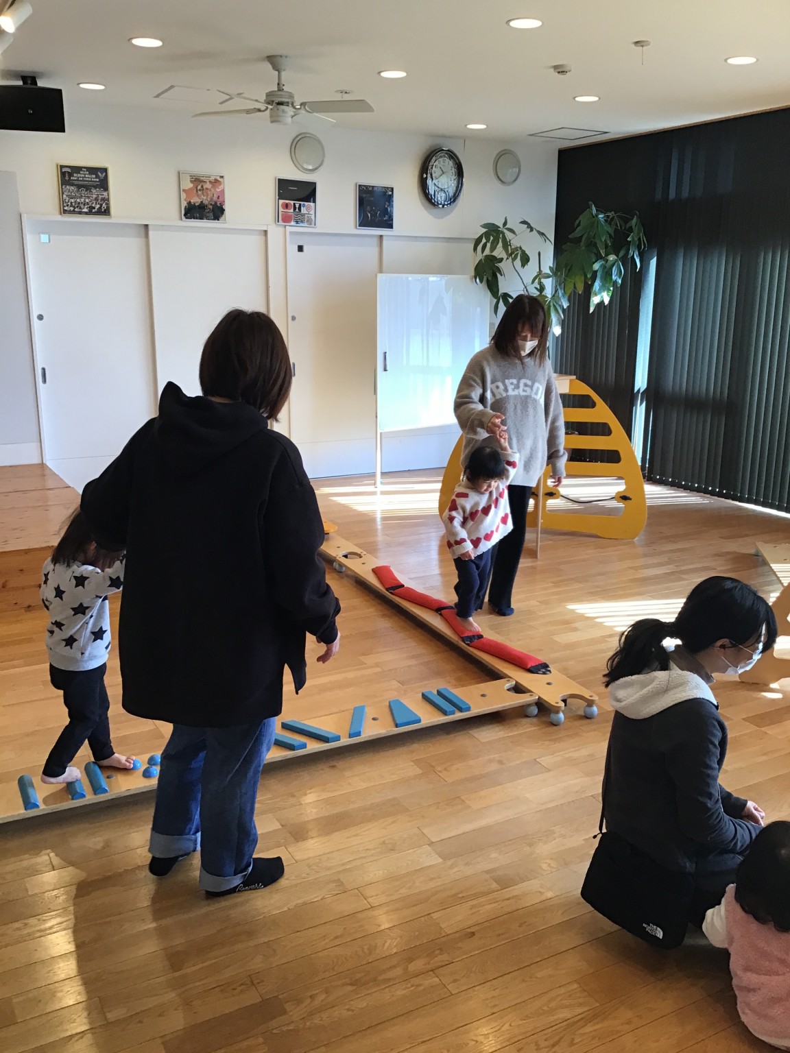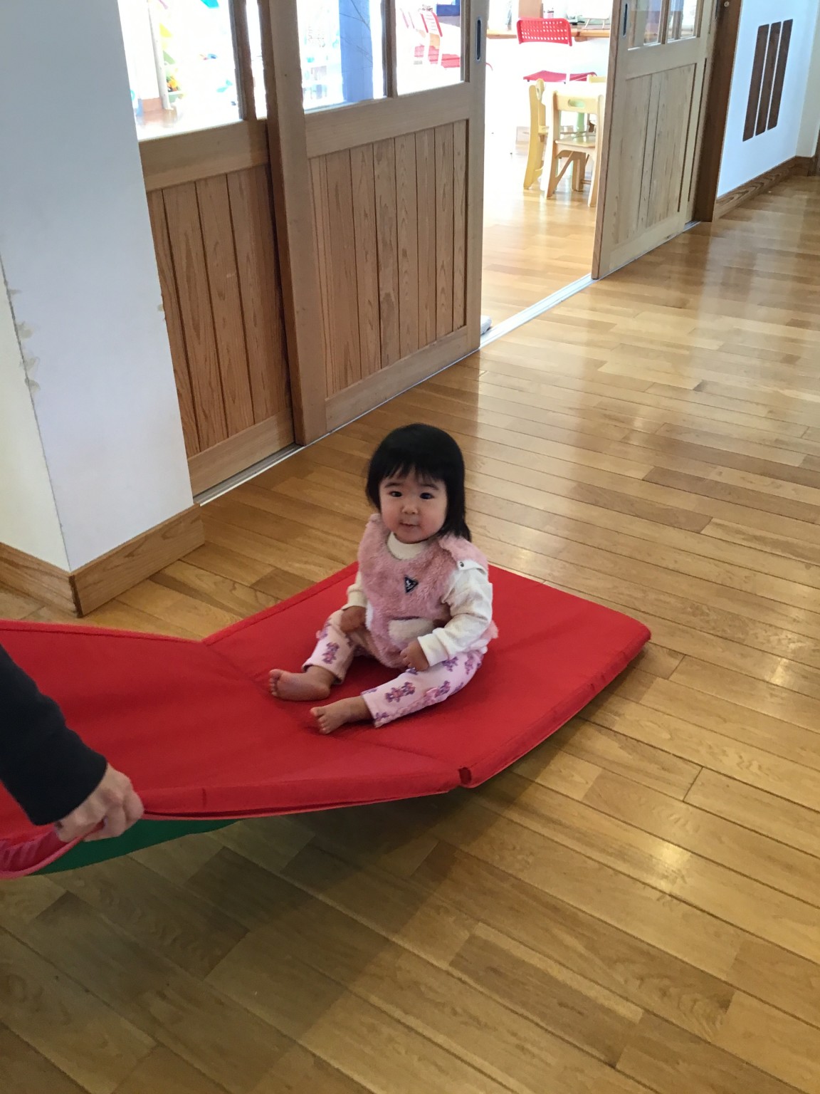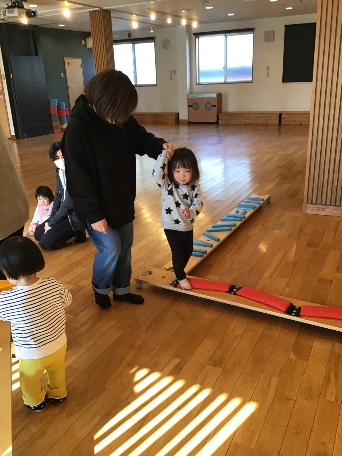 ホールで遊ぼう♪ 2026年1月26日 今日はホールで遊びました♪ アスレチックに登ったり,マットに乗って引っ張ってもらったり お母さんと一緒に楽しく遊んで お友達もニコニコ笑顔でした☺️ いっぱい体を動かして 遊んで満足したお友達は、お部屋でも笑顔でゆっくり遊んでくれました。