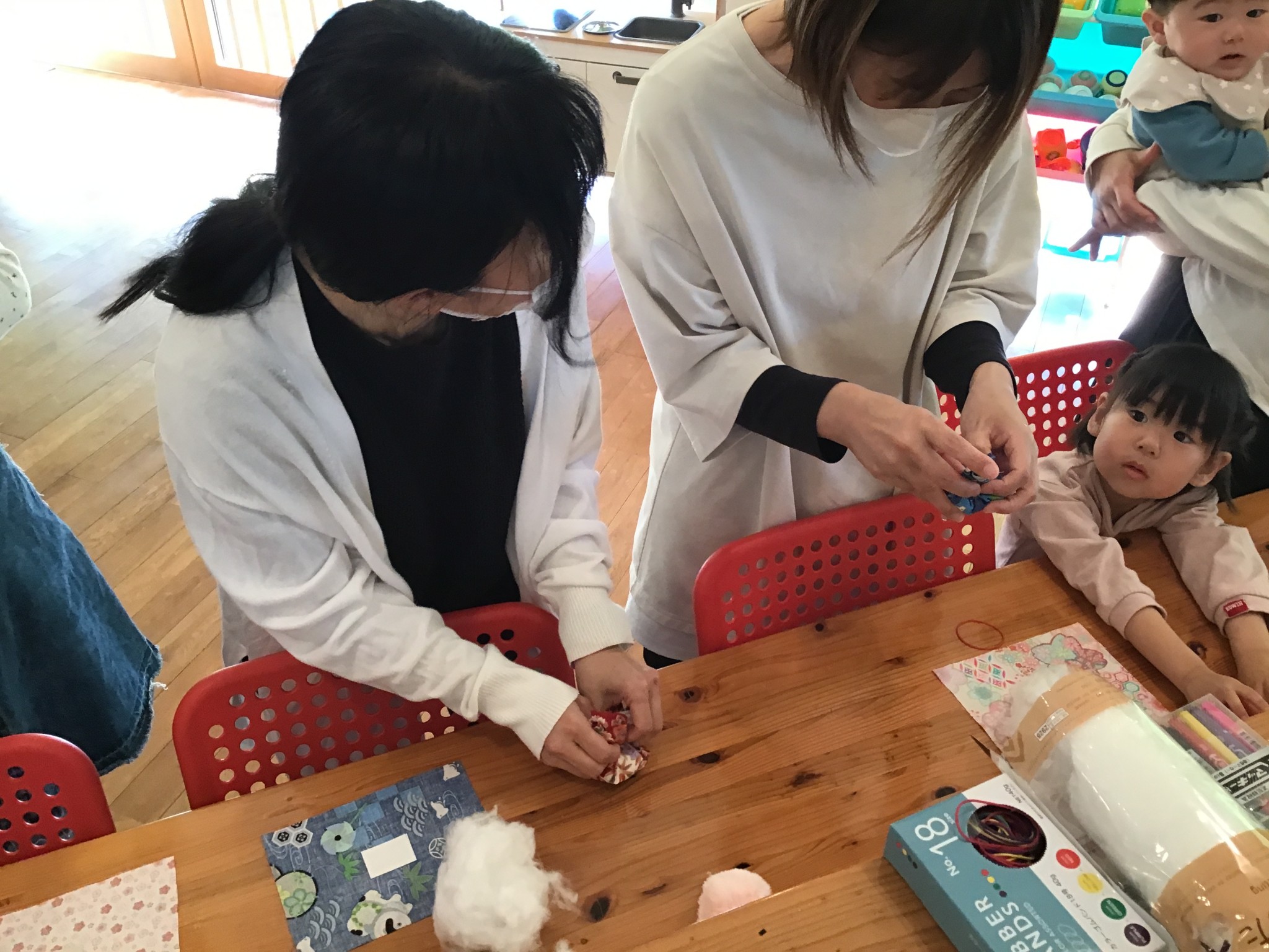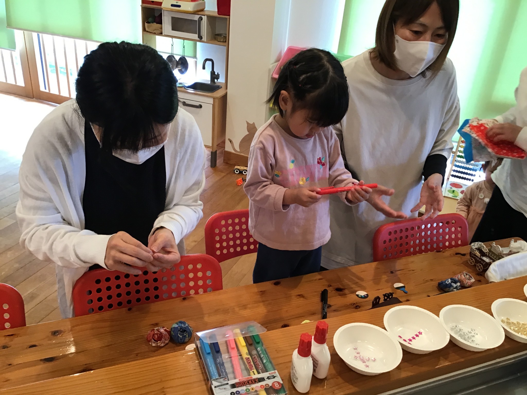 そのあとは,お母さん方にかわいいひな祭りの飾りを
