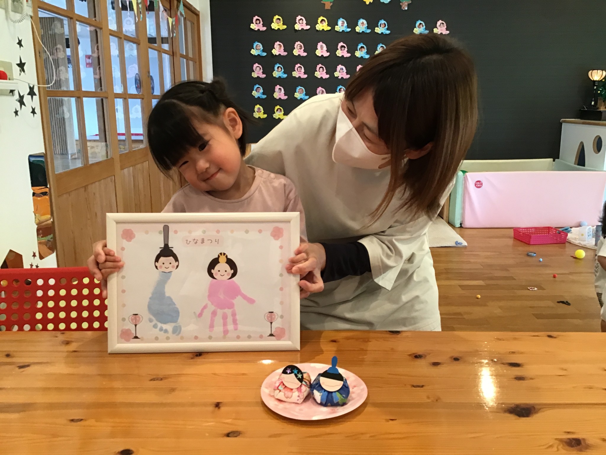 手型ペッタン足型ペッタンでかわいいひな祭りの飾りが出来ました♡